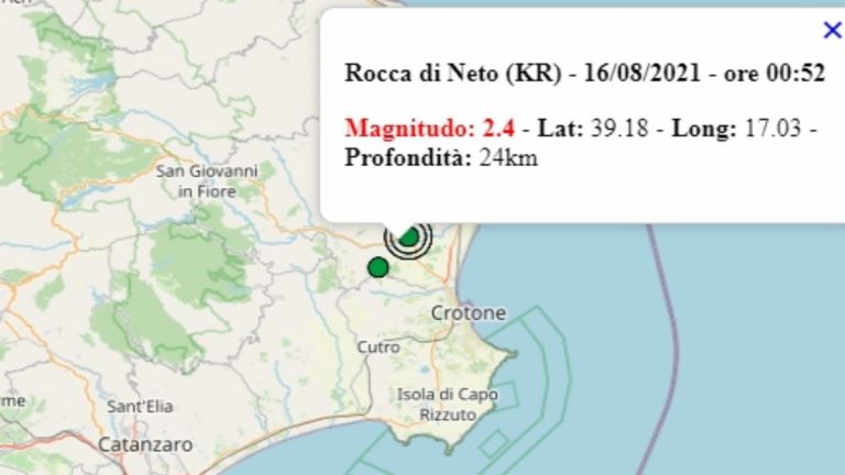 Terremoto In Calabria Oggi Lunedi 16 Agosto 2021 Scossa M 2 4 In Provincia Crotone Dati Ingv