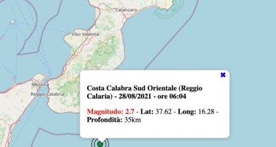 Non si segnalano danni a persone o cose. Secondo i rilevamenti dellIstituto nazionale di geofisica e vulcanologia il sisma ha avuto ipocentro a circa 200 km di profondità ed epicentro a 58 km da Lamezia Terme Catanzaro. Due scosse di terremoto sono state avvertite oggi giovedì 19 agosto 2021 in Italia.